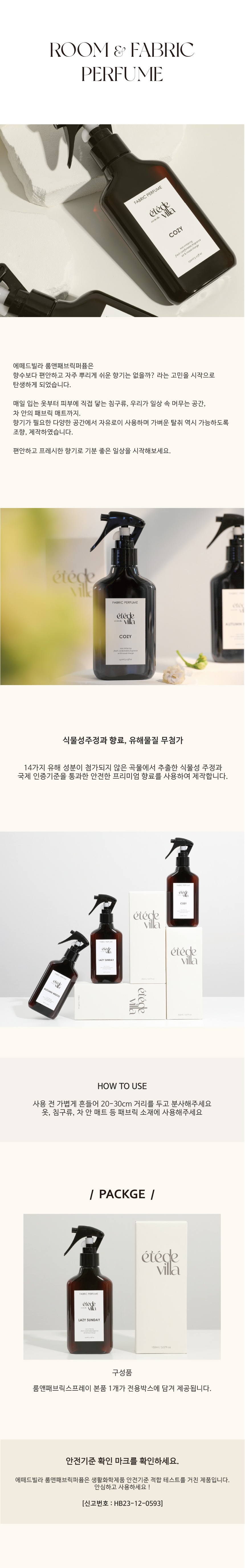 에떼드빌라 룸앤패브릭퍼퓸은 향수보다 편안하고 자주 뿌리게 쉬운 향기는 없을까? 라는 고민을 시작으로 탄생하게 되었습니다. 매일 입는 옷부터 피부에 직접 닿는 침구류, 우리가 일상 속 머무는 공간, 차 안의 패브릭 매트까지. 향기가 필요한 다양한 공간에서 자유로이 사용하며 가벼운 탈취 역시 가능하도록 조향, 제작하였습니다. 편안하고 프레시한 향기로 기분 좋은 일상을 시작해보세요. 테제 Herb l Vetiver l Sandalwood |